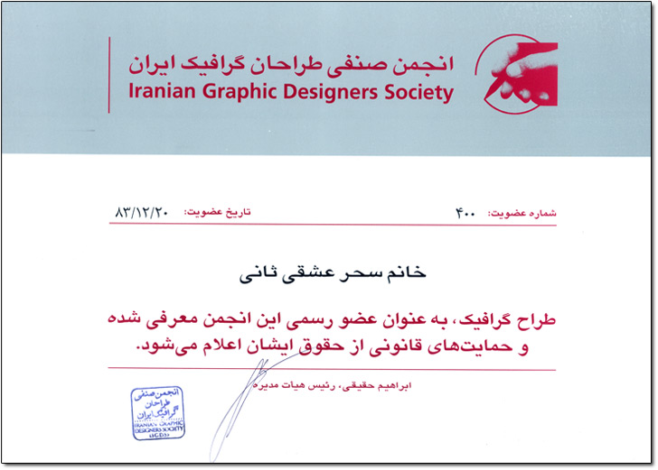 membership of “The Iranian Graphic Designers Society” since